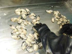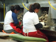 森脇水産では機械を使わず、すべて手作業で良い牡蠣を選んで出荷しています。 |