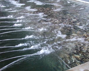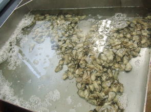 水揚げした牡蠣は、専用洗浄プールで20時間以上かけて洗います。 |
